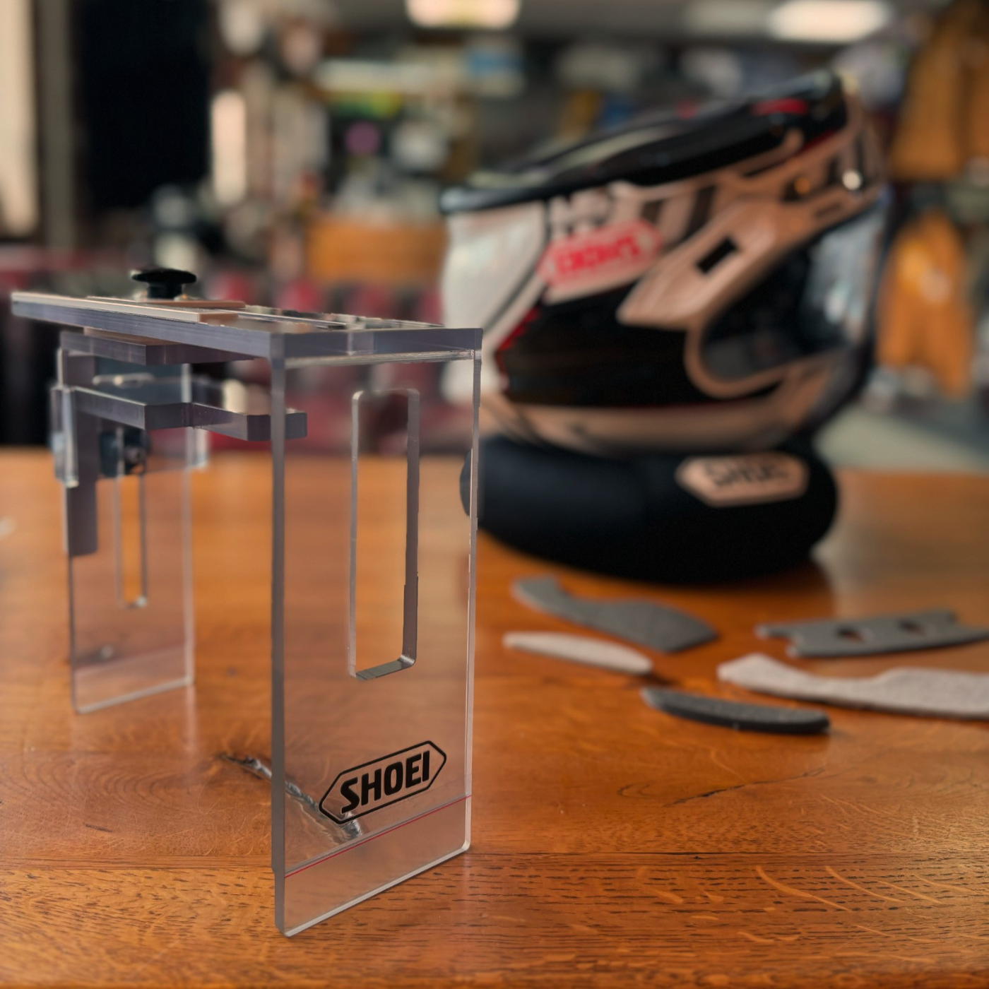 Using specially developed computer software and a snazzy head measuring tool, Shoei P.F.S technicians (that’s us!) can accurately analyse a person’s head shape to identify their correct helmet size, and necessary liner adjustment positions. Using this data, a tailored fit can be achieved by fine-tuning the inner liner. The helmet is first provisionally fitted with special fitting pads. After a try-on and any necessary fine-tuning, the pads are finally fixed in place - so no turning back now! This is achieved by adding the suggested extra ‘hard’ or ‘soft’ liner pieces that is suggested on the computer. This, along with conversation with our lovely customer, will give us a helmet fit ready for those adventures!