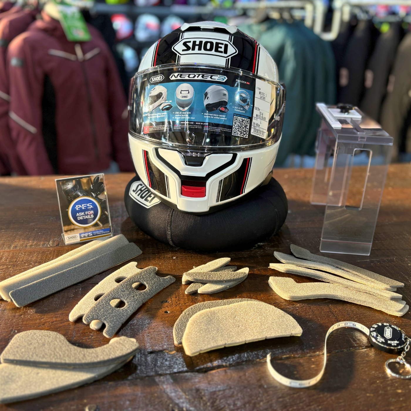 Now we know we keep harping on about P.F.S (Personal Fitting System) but it really is one of the most innovative softwares to hit the motorcycle industry. The system is a concept pioneered by Shoei to enhance the comfort and safety of Shoei helmets, by providing a truly individual fit. We all know that the fit of the helmet is the most important thing, and P.F.S further adjusts the already outstanding fit of Shoei helmets to individual head shapes. This also means that we can adjust the fit for those who may not naturally fit the Shoei shape. All of this will enhance the comfort and safety of your Shoei helmet.